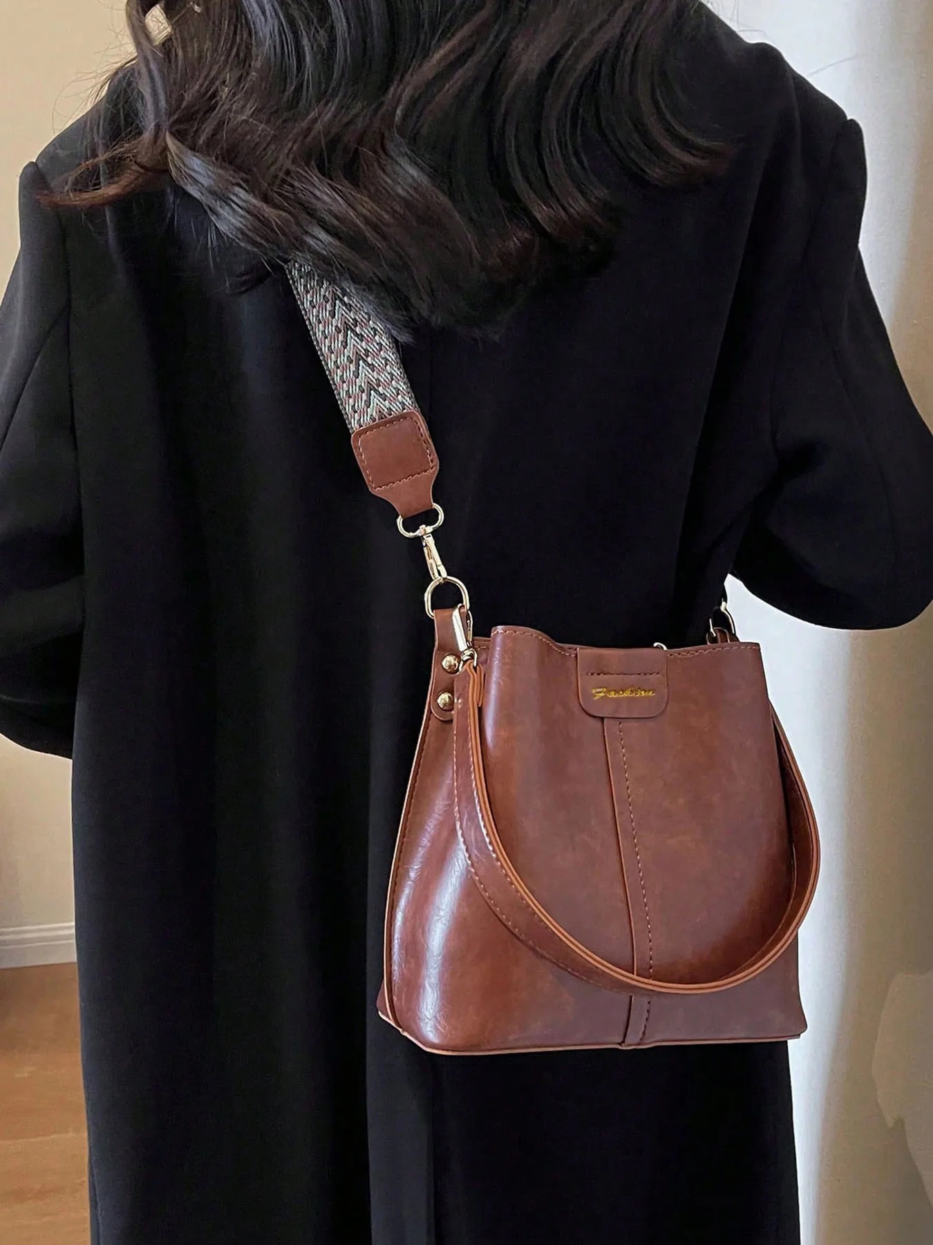 Exquisite women's bucket bag, fashionable and avant-garde solid color shoulder bag crossbody bag, retro and niche design, suitable for commuting, daily shopping and dating